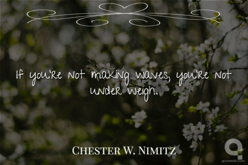 If you're not making waves, you're not under weigh. Chester W. Nimitz