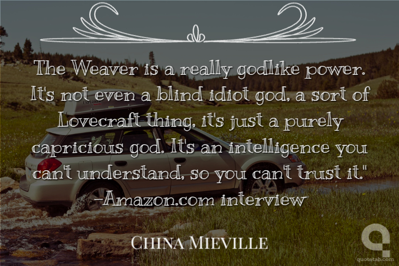 The Weaver is a really godlike power. It's not even a blind idiot god, a sort of Lovecraft thing, it's just a purely capricious god. It's an intelligence you can't understand, so you can't trust it." -Amazon.com interview China Mieville