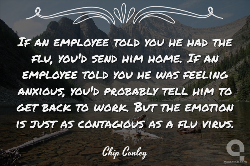 If an employee told you he had the flu, you'd send him home. If an employee told you he was feeling anxious, you'd probably tell him to get back to work. But the emotion is just as contagious as a flu virus. Chip Conley