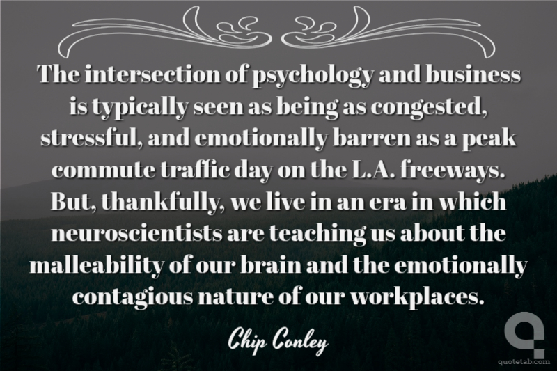 The intersection of psychology and business is typically seen as being as congested, stressful, and emotionally barren as a peak commute traffic day on the L.A. freeways. But, thankfully, we live in an era in which neuroscientists are teaching us about the malleability of our brain and the emotionally contagious nature of our workplaces. Chip Conley
