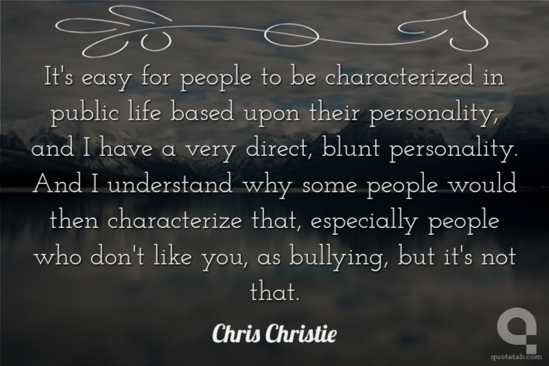 It's easy for people to be characterized in public life based upon their personality, and I have a very direct, blunt personality. And I understand why some people would then characterize that, especially people who don't like you, as bullying, but it's not that. Chris Christie