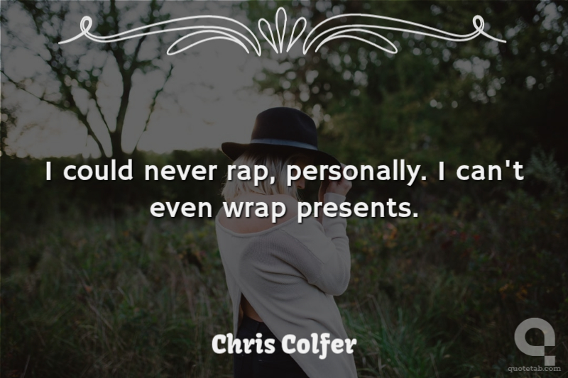 I could never rap, personally. I can't even wrap presents. Chris Colfer