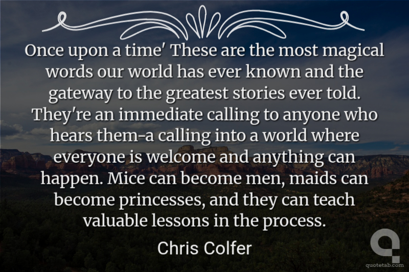 Once upon a time' These are the most magical words our world has ever known and the gateway to the greatest stories ever told. They're an immediate calling to anyone who hears them-a calling into a world where everyone is welcome and anything can happen. Mice can become men, maids can become princesses, and they can teach valuable lessons in the process. Chris Colfer