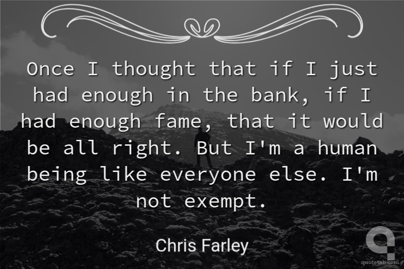 Once I thought that if I just had enough in the bank, if I had enough fame, that it would be all right. But I'm a human being like everyone else. I'm not exempt. Chris Farley