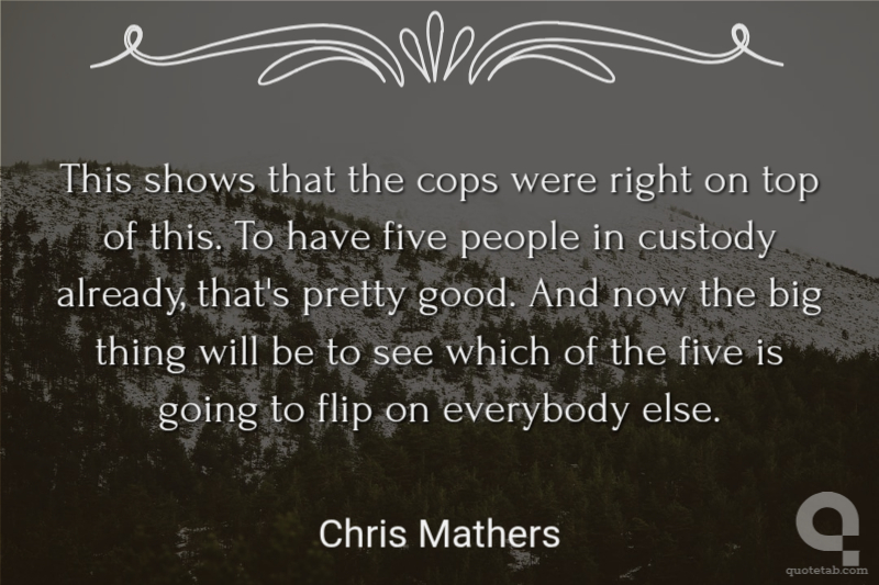 This shows that the cops were right on top of this. To have five people in custody already, that's pretty good. And now the big thing will be to see which of the five is going to flip on everybody else. Chris Mathers