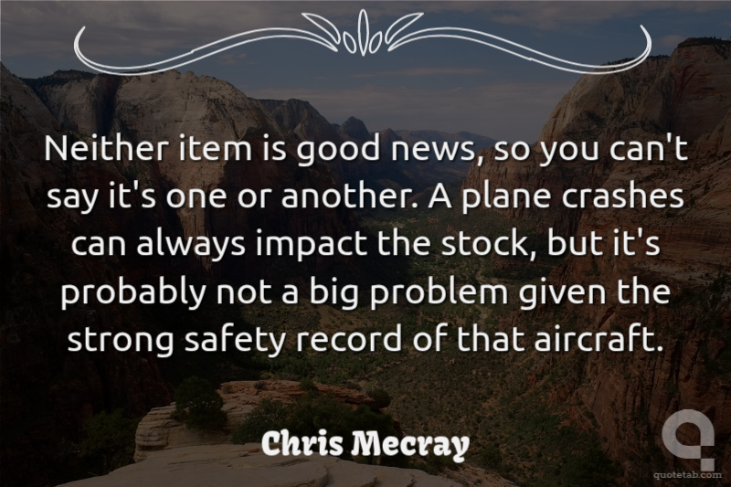 Neither item is good news, so you can't say it's one or another. A plane crashes can always impact the stock, but it's probably not a big problem given the strong safety record of that aircraft. Chris Mecray