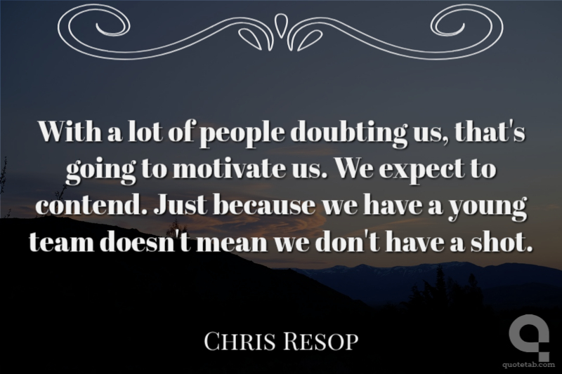 With a lot of people doubting us, that's going to motivate us. We expect to contend. Just because we have a young team doesn't mean we don't have a shot. Chris Resop