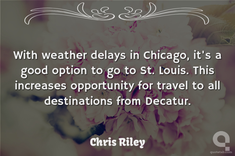 With weather delays in Chicago, it's a good option to go to St. Louis. This increases opportunity for travel to all destinations from Decatur. Chris Riley