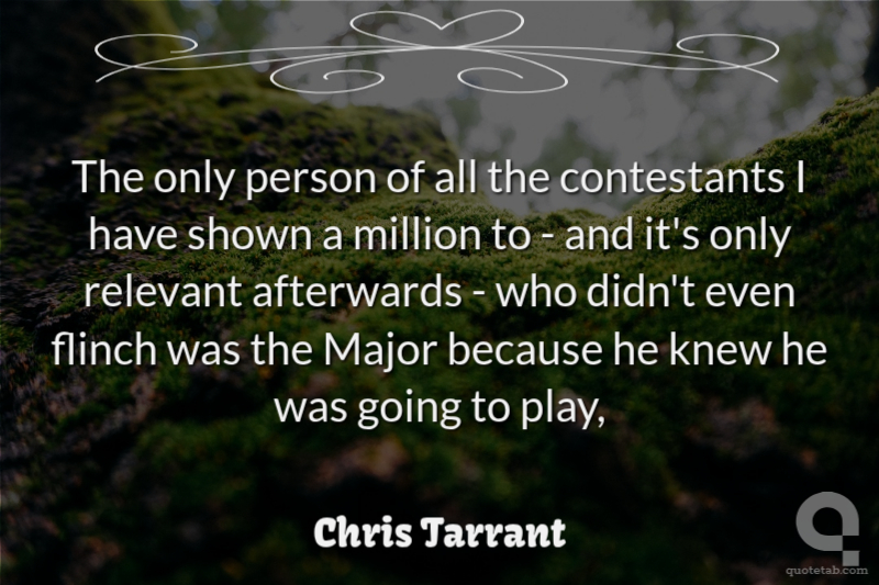 The only person of all the contestants I have shown a million to - and it's only relevant afterwards - who didn't even flinch was the Major because he knew he was going to play, Chris Tarrant