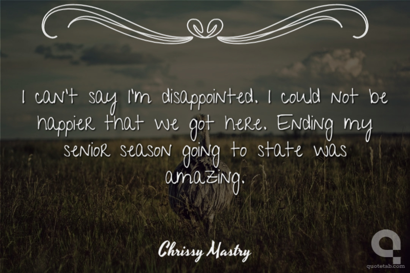 I can't say I'm disappointed. I could not be happier that we got here. Ending my senior season going to state was amazing. Chrissy Mastry