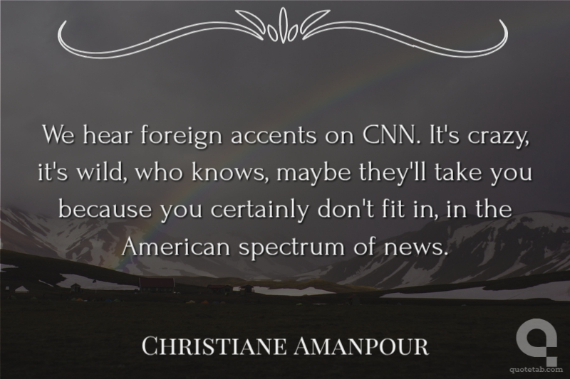We hear foreign accents on CNN. It's crazy, it's wild, who knows, maybe they'll take you because you certainly don't fit in, in the American spectrum of news. Christiane Amanpour