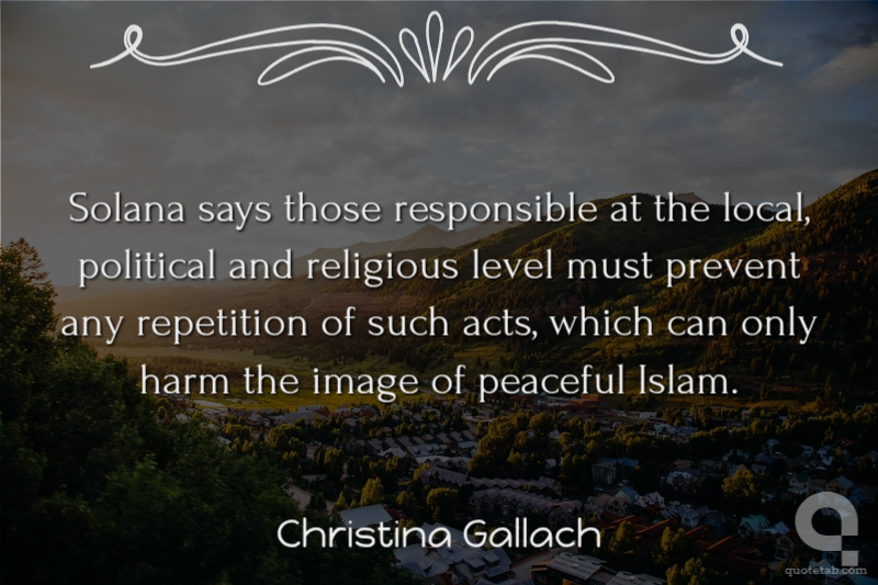 Solana says those responsible at the local, political and religious level must prevent any repetition of such acts, which can only harm the image of peaceful Islam. Christina Gallach