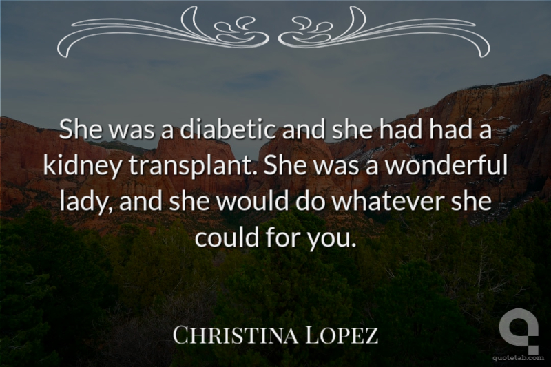 She was a diabetic and she had had a kidney transplant. She was a wonderful lady, and she would do whatever she could for you. Christina Lopez