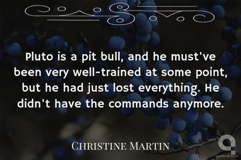 Pluto is a pit bull, and he must've been very well-trained at some point, but he had just lost everything. He didn't have the commands anymore. Christine Martin