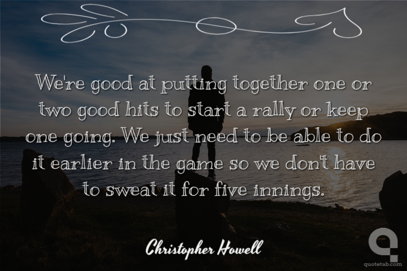 We're good at putting together one or two good hits to start a rally or keep one going. We just need to be able to do it earlier in the game so we don't have to sweat it for five innings. Christopher Howell
