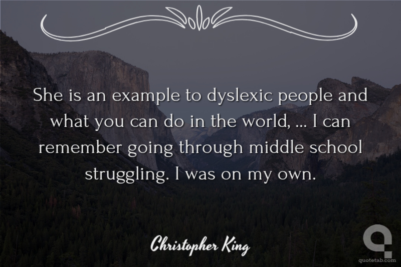 She is an example to dyslexic people and what you can do in the world, ... I can remember going through middle school struggling. I was on my own. Christopher King