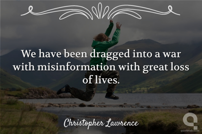 We have been dragged into a war with misinformation with great loss of lives. Christopher Lawrence