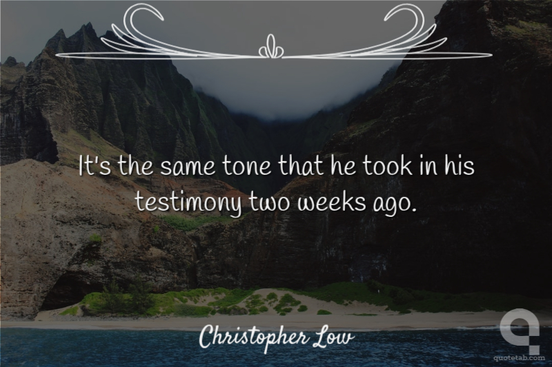 It's the same tone that he took in his testimony two weeks ago. Christopher Low