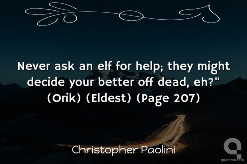 Never ask an elf for help; they might decide your better off dead, eh?" (Orik) (Eldest) (Page 207) Christopher Paolini