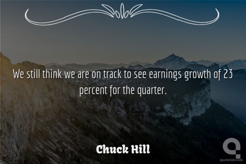 We still think we are on track to see earnings growth of 23 percent for the quarter. Chuck Hill