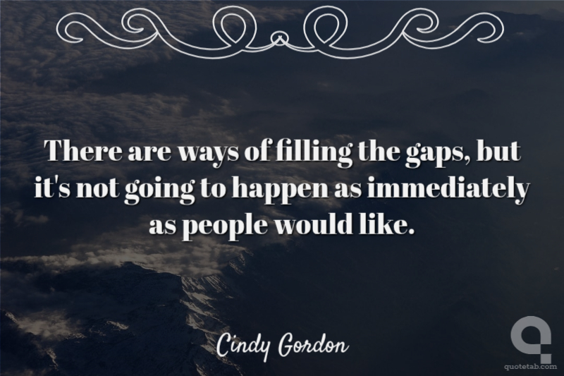 There are ways of filling the gaps, but it's not going to happen as immediately as people would like. Cindy Gordon