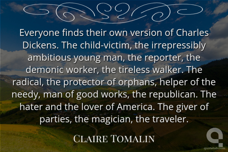 Writing Charles Dickens' biography is like writing five biographies. Claire Tomalin