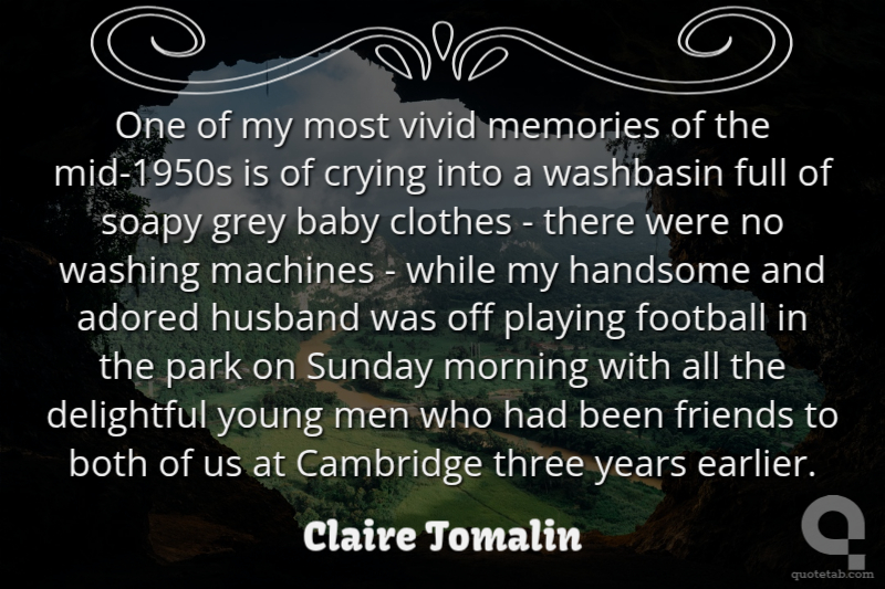 One of my most vivid memories of the mid-1950s is of crying into a washbasin full of soapy grey baby clothes - there were no washing machines - while my handsome and adored husband was off playing football in the park on Sunday morning with all the delightful young men who had been friends to both of us at Cambridge three years earlier. Claire Tomalin