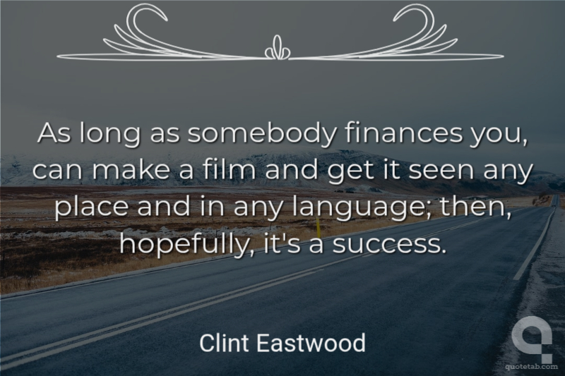 As long as somebody finances you, can make a film and get it seen any place and in any language; then, hopefully, it's a success. Clint Eastwood