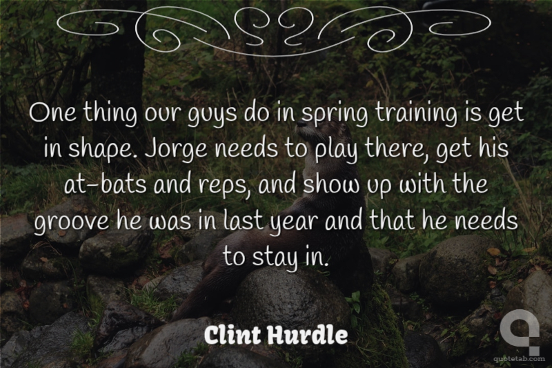 One thing our guys do in spring training is get in shape. Jorge needs to play there, get his at-bats and reps, and show up with the groove he was in last year and that he needs to stay in. Clint Hurdle