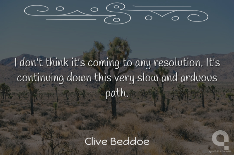 I don't think it's coming to any resolution. It's continuing down this very slow and arduous path. Clive Beddoe