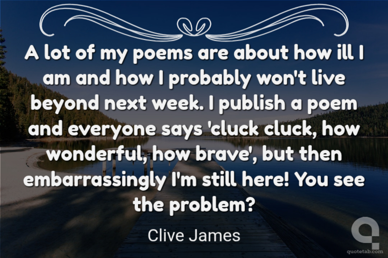 A lot of my poems are about how ill I am and how I probably won't live beyond next week. I publish a poem and everyone says 'cluck cluck, how wonderful, how brave', but then embarrassingly I'm still here! You see the problem? Clive James