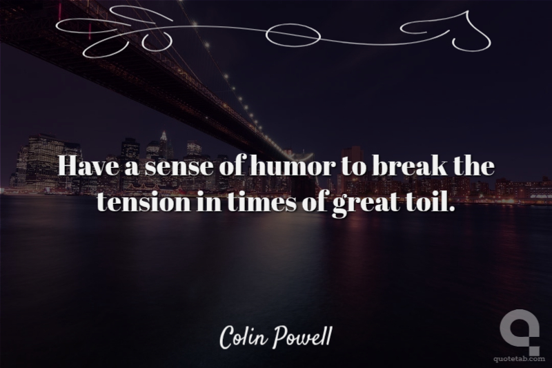 Have a sense of humor to break the tension in times of great toil. Colin Powell