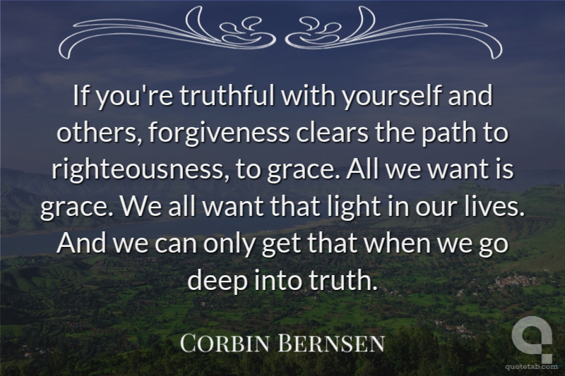 If you're truthful with yourself and others, forgiveness clears the path to righteousness, to grace. All we want is grace. We all want that light in our lives. And we can only get that when we go deep into truth. Corbin Bernsen