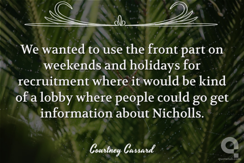 We wanted to use the front part on weekends and holidays for recruitment where it would be kind of a lobby where people could go get information about Nicholls. Courtney Cassard
