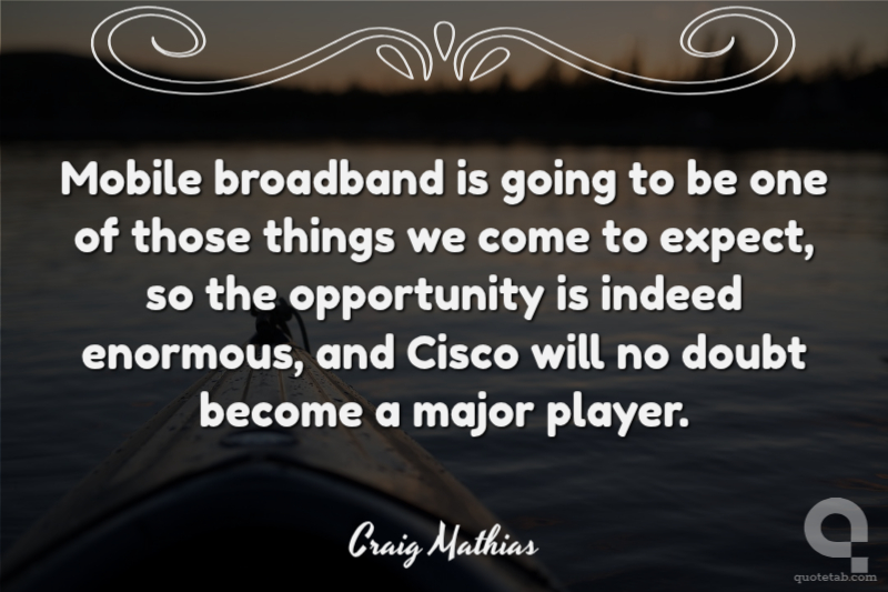 Mobile broadband is going to be one of those things we come to expect, so the opportunity is indeed enormous, and Cisco will no doubt become a major player. Craig Mathias