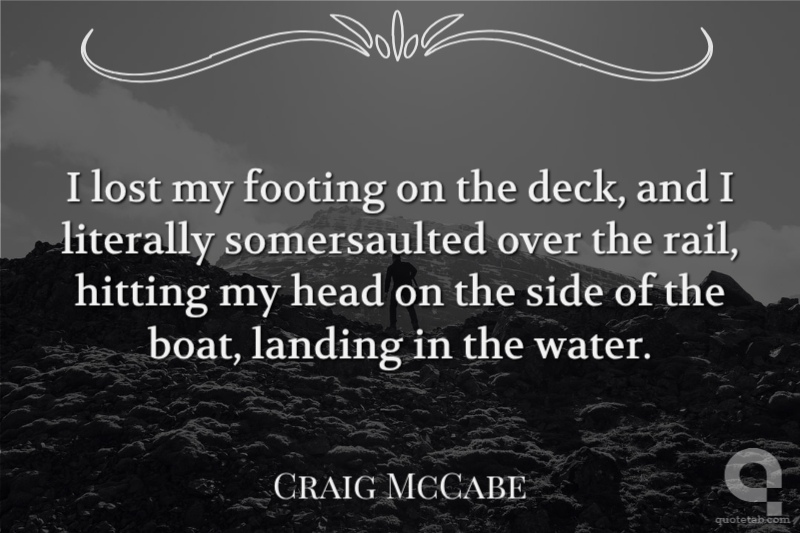 I lost my footing on the deck, and I literally somersaulted over the rail, hitting my head on the side of the boat, landing in the water. Craig McCabe