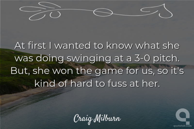At first I wanted to know what she was doing swinging at a 3-0 pitch. But, she won the game for us, so it's kind of hard to fuss at her. Craig Milburn