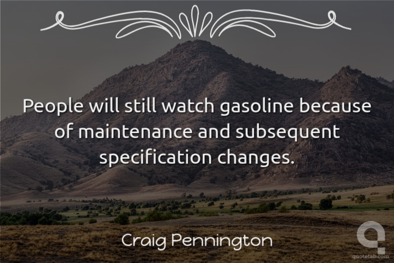 People will still watch gasoline because of maintenance and subsequent specification changes. Craig Pennington