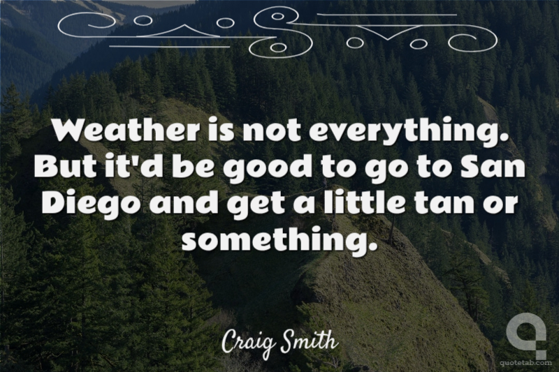 Weather is not everything. But it'd be good to go to San Diego and get a little tan or something. Craig Smith
