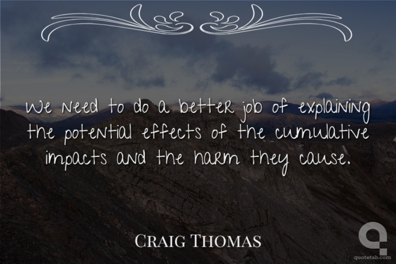 We need to do a better job of explaining the potential effects of the cumulative impacts and the harm they cause. Craig Thomas