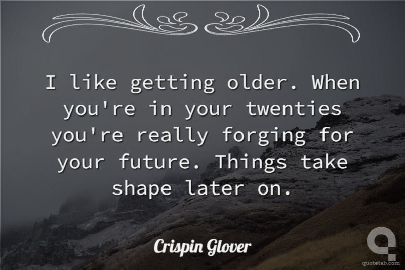 I like getting older. When you're in your twenties you're really forging for your future. Things take shape later on. Crispin Glover