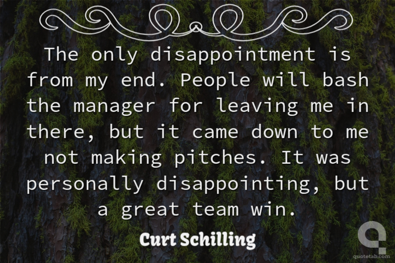 The only disappointment is from my end. People will bash the manager for leaving me in there, but it came down to me not making pitches. It was personally disappointing, but a great team win. Curt Schilling
