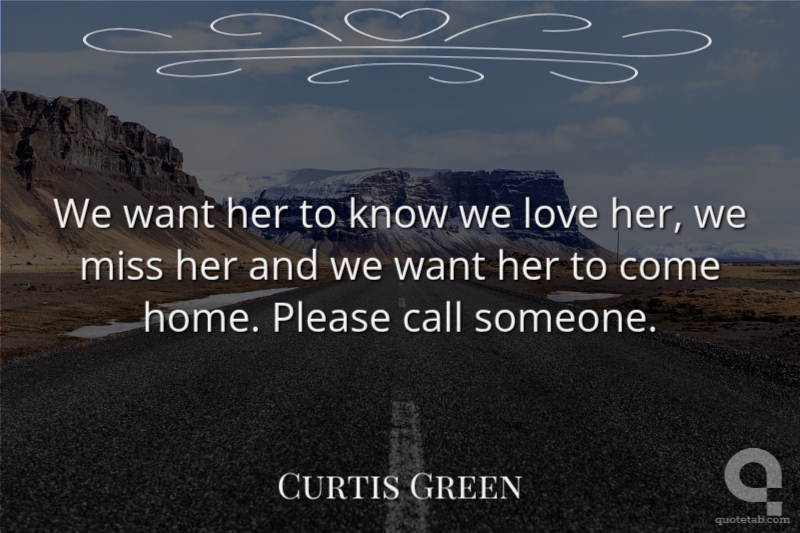 We want her to know we love her, we miss her and we want her to come home. Please call someone. Curtis Green