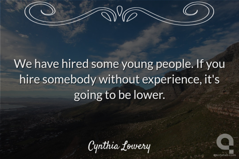 We have hired some young people. If you hire somebody without experience, it's going to be lower. Cynthia Lowery