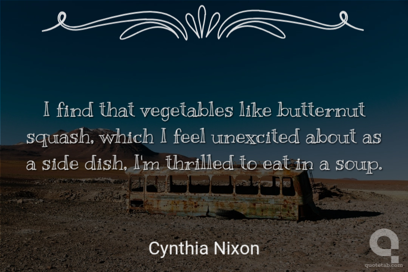 I find that vegetables like butternut squash, which I feel unexcited about as a side dish, I'm thrilled to eat in a soup. Cynthia Nixon