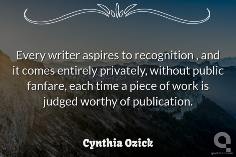 Every writer aspires to recognition , and it comes entirely privately, without public fanfare, each time a piece of work is judged worthy of publication. Cynthia Ozick