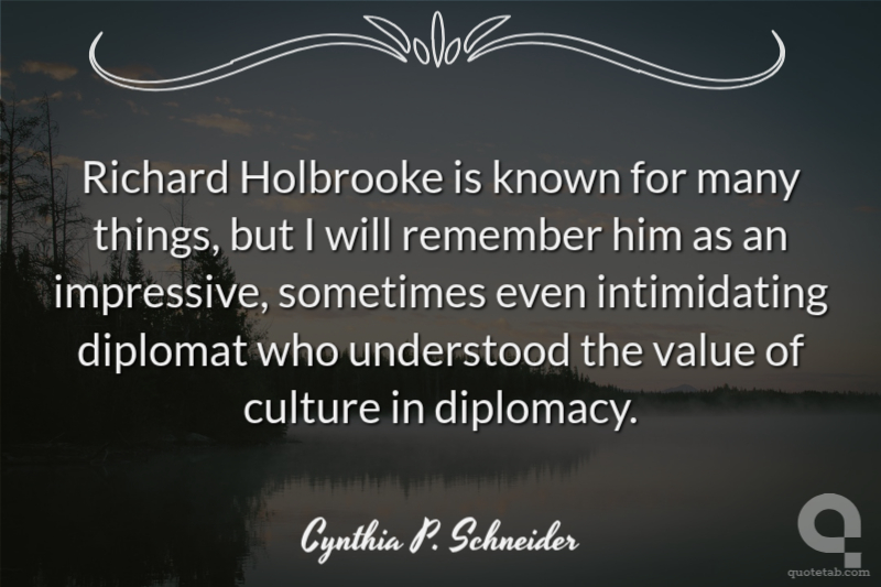 Richard Holbrooke is known for many things, but I will remember him as an impressive, sometimes even intimidating diplomat who understood the value of culture in diplomacy. Cynthia P. Schneider