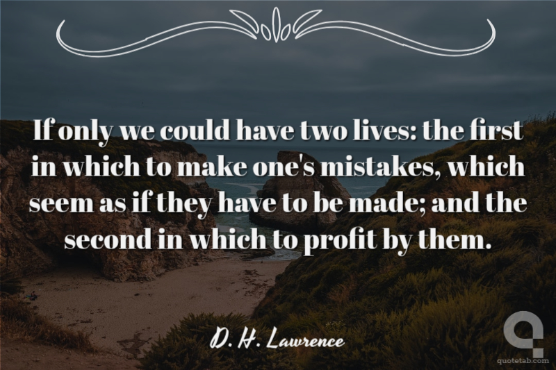 If only we could have two lives: the first in which to make one's mistakes, which seem as if they have to be made; and the second in which to profit by them. D. H. Lawrence