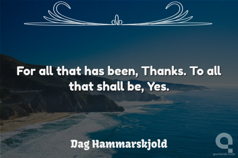For all that has been, Thanks. To all that shall be, Yes. Dag Hammarskjold