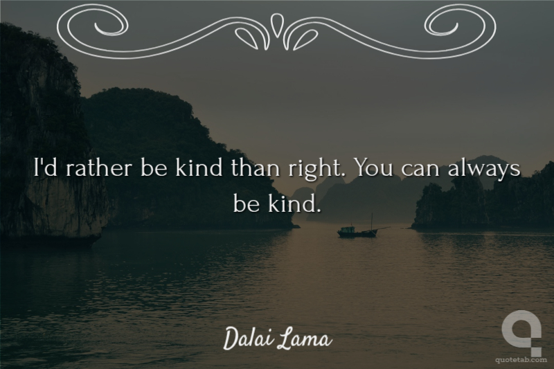 I'd rather be kind than right. You can always be kind. Dalai Lama